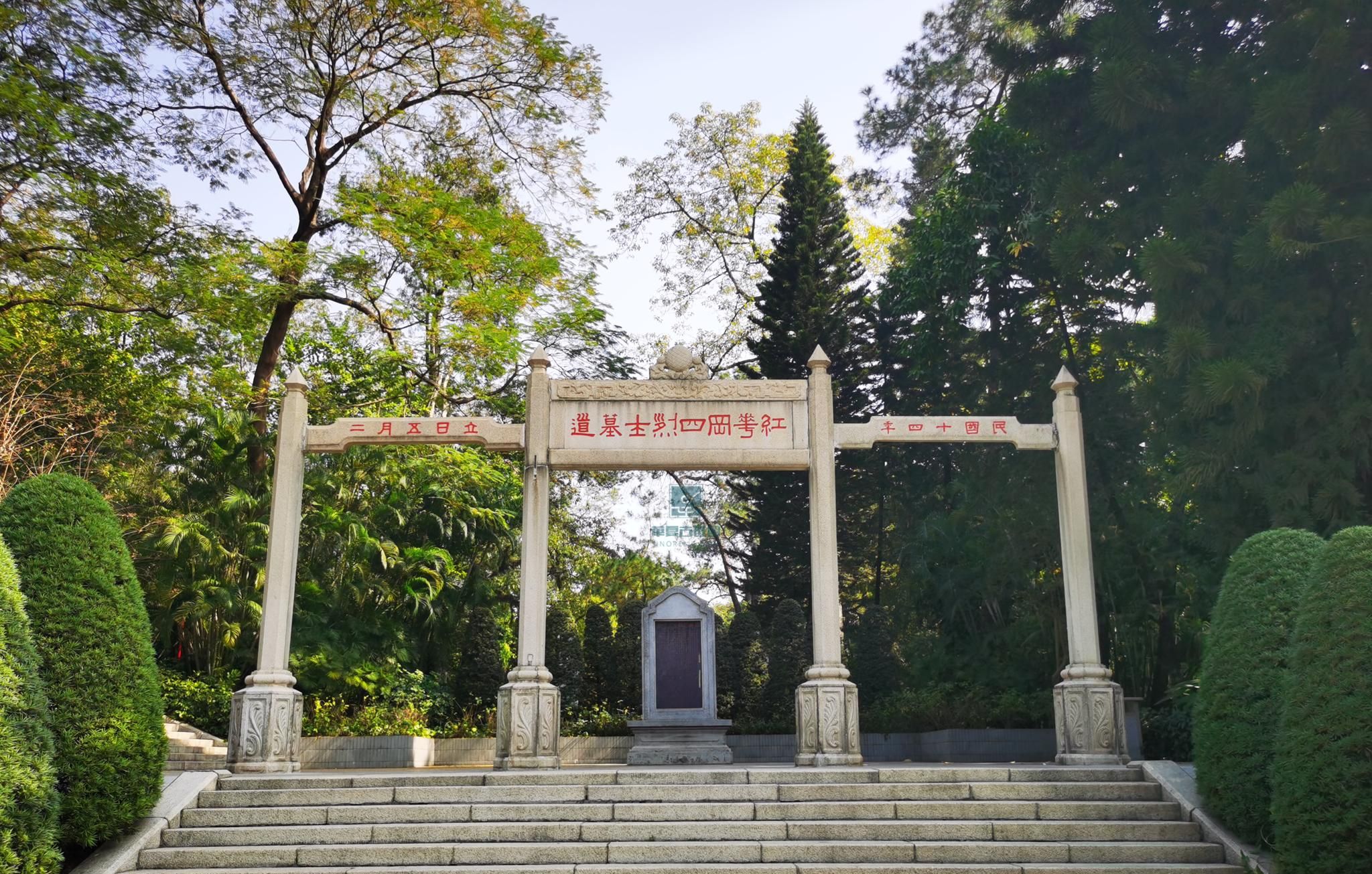 四烈士墓(The Tomb of the Four Martyrs),又名“红花岗四烈士墓”,位于中国广东省广州市越秀区大塘街道东平社区广州起义烈士陵园正门内东侧(原名红花岗),是辛亥革命前后牺性的同盟会会员温生才、陈敬岳、林冠慈、钟明光四烈士的合葬墓。四烈士墓由石牌坊、墓道、纪念石碑、墓冢、拜桌组成。墓为花岗石建筑,墓道成曲尺形,先向南,后向西。墓道前有一座四柱三间冲天式石牌坊,坊额横刻“红花岗四烈士墓道”,落款刻“民国十四年二月五日立”。坊后平台的东面竖立一块石碑,刻《红花岗四烈士之碑》,为邹鲁撰文,记述了四烈士英勇牺牲的事迹。平台北面是石级墓道,拾级而上便到四烈士墓。墓坐北向南,墓冢为半球形,混凝土结构,前有花岗岩石祭台。墓碑刻“温生才、陈敬岳、林冠慈、钟明光烈士之墓”、“中华民国二十六年重修”。墓前为花岗石拜桌。墓道的东西两侧各建一钢筋混凝土结构的六角亭,琉璃瓦顶。四烈士是为反对腐...