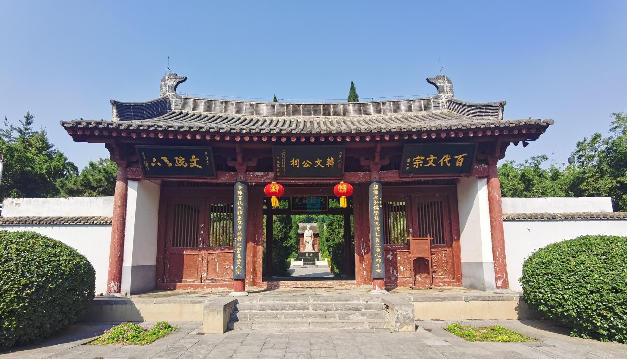 韩愈墓,位于河南省孟州市城西6公里韩庄村北半岭坡上,始建于唐敬宗宝历元年(825年),占地2万平方米。韩愈墓最前方是一座红色大理石镶嵌的“韩园”纪念碑。纪念碑之后,拾步42级台阶即是韩园的山门。陵园中央耸立着一座大型韩愈雕像。往北迎面即是拜堂,也称飨堂。飨堂后即是祠院。该殿面阔三间,砖木结构。进深4米,横宽11米,四梁八柱,方砖铺地,四壁镶嵌碑刻数通,记述墓祠兴衰、黎民捐资等历史事件。韩愈墓冢位于韩愈祠的中央,呈圆形。高10米,围长60余米。1984年6月,河南孟县(今孟州市)韩愈祠被河南省列为省级重点文物保护单位。1986年11月,韩愈墓被公布为河南省文物保护单位。2006年05月25日,韩愈墓作为唐代古墓葬,被国务院批准列入第六批全国重点文物保护单位名单。