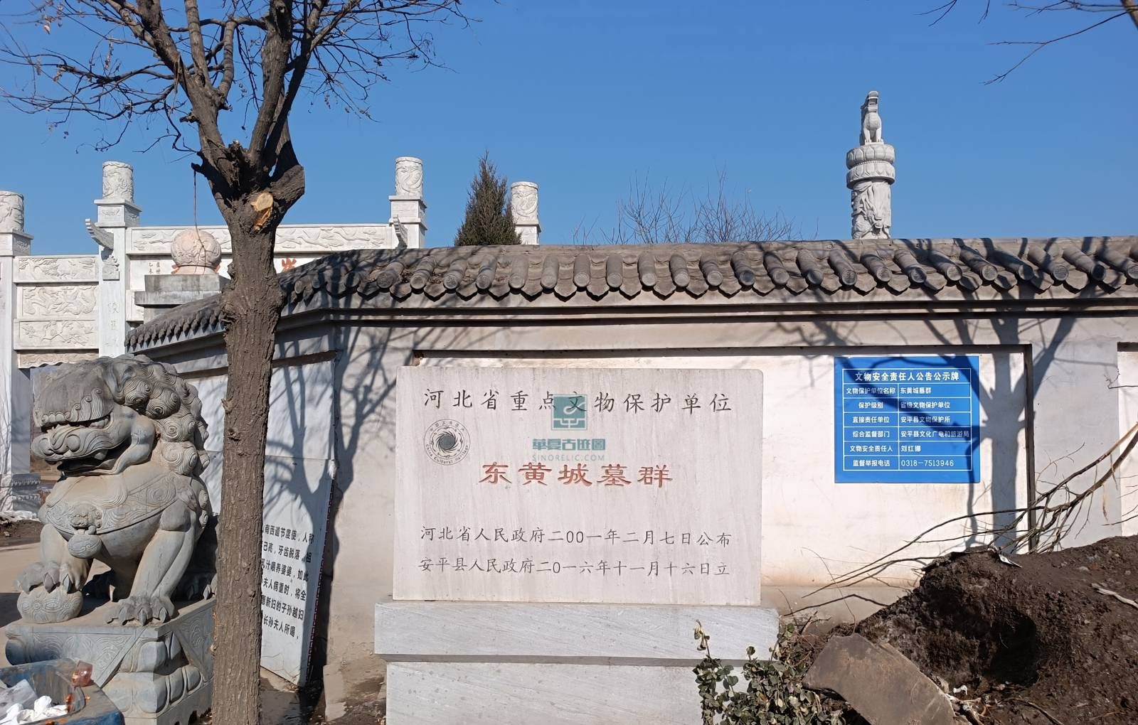 东黄城墓群位于河北省安平县东黄城村一带,是博陵崔氏家族的汉至清代墓群。博陵崔氏为南北朝时期北方四大士族之一,唐朝五姓大族之一,历史上有记载的家族成员有40多人。族人按族葬之习,死后多归葬故里,因此该村周围遗存古墓众多。墓群主要包括两处:一处位于村北50米处,为清代崔成轩墓(亦称崔公墓)及数十座无名古墓冢;另一处位于村东南500米处,有东汉崔寔墓(亦称崔公墓),其东100米处为北魏崔敬邑墓。整个墓群占地面积约25000平方米。2001年2月被河北省政府列为省级重点文物保护单位。墓群在历史上多次遭破坏,抗日战争时期遭日军破坏,2012年曾发生盗掘事件。2015年5月成立博陵崔氏历史文化研究会,开展修复工作并搜集文物。