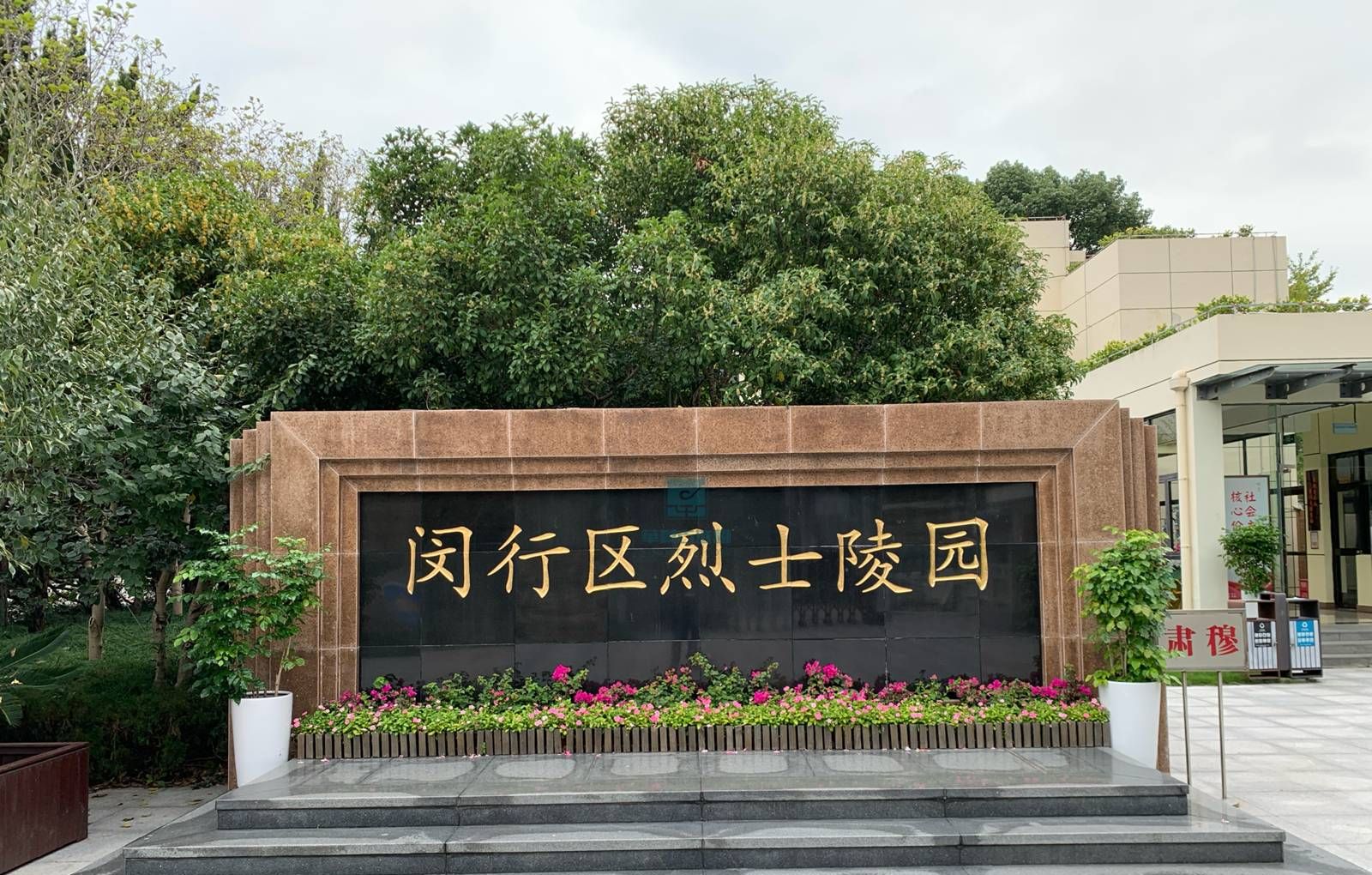 闵行区烈士陵园位于上海市闵行区莘庄中春路沁春路西侧莘庄工业区休闲公园一湖中小岛上。整个陵园占地24600多平方米。陵园由办公楼、祭扫广场、革命烈士事迹陈列馆、烈士墓区四部分组成。祭扫广场西侧矗立着一座高4.5、宽10米的纪念碑,正面镌刻着毛泽东同志题词:革命烈士永垂不朽。陈列馆建筑面积2452平方米,馆内主要展示革命烈士生平事迹介绍、烈士遗像、遗物等。烈士墓区呈梯田状,埋葬着抗日战争、解放上海战役中牺牲的部分解放军指战员和支前民工,以及建国后因公不幸牺牲的188位革命烈士的忠骨。陵园松柏常青,庄严肃穆。