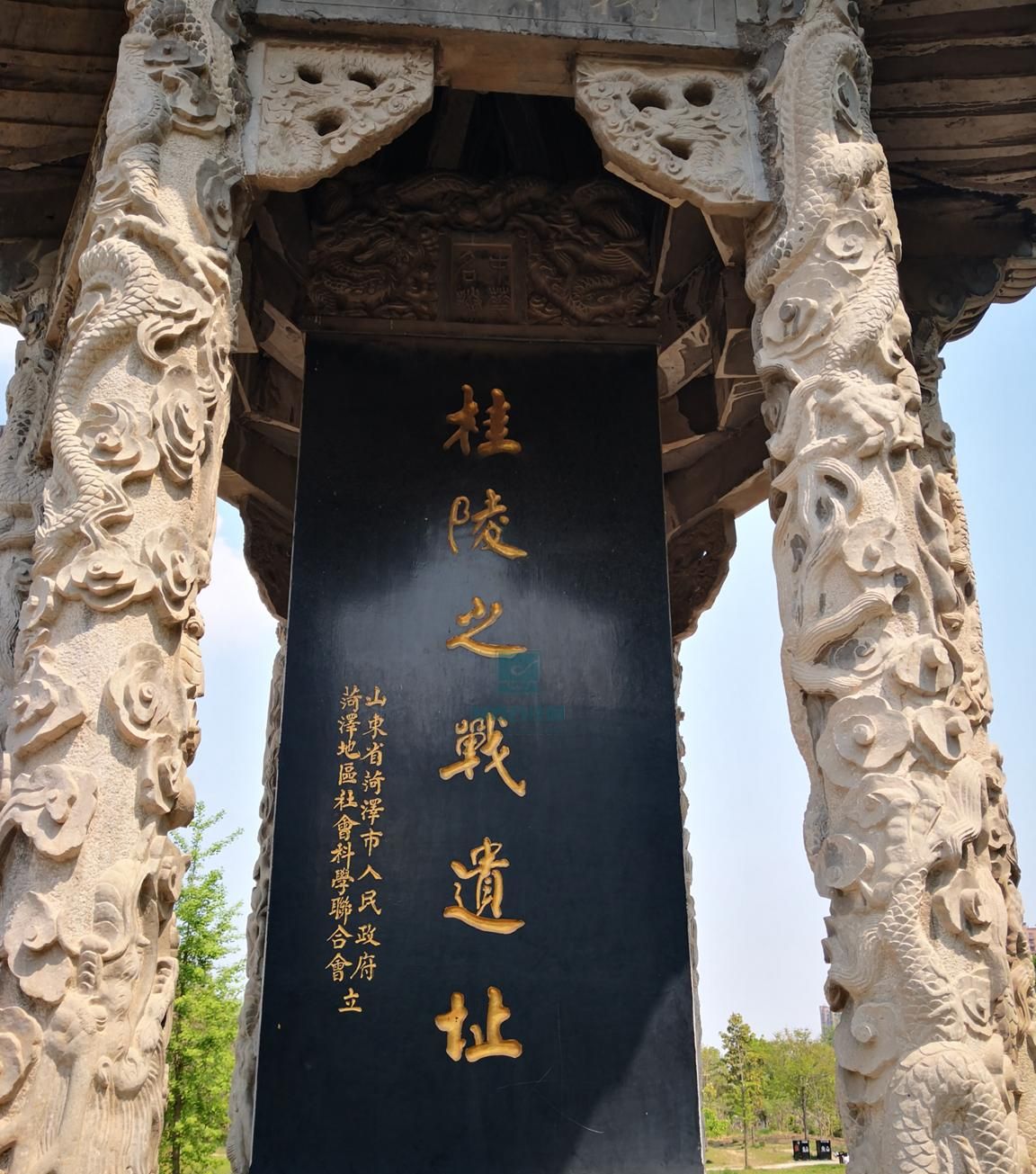 桂陵之战遗址位于山东省菏泽市曹州牡丹园东区及园北芦堌堆区域,与孙膑“围魏救赵”战术实践直接相关。现存'桂陵之战遗址'碑亭、八角桂陵古井及芦堌堆省级文保单位碑等遗存。碑亭建于1997年,高8米,由青色大理石构筑;古井深16.9米,1980年出土陶器。芦堌堆曾出土商周陶器,印证古代聚落存在。遗址所在的曹州牡丹园以牡丹种植闻名,培育有粉中冠、冠世墨玉等品种,并栽植芍药等花灌木。通过融合历史遗存与现代景观,形成兼具文化展示与花卉观赏功能的公共空间。