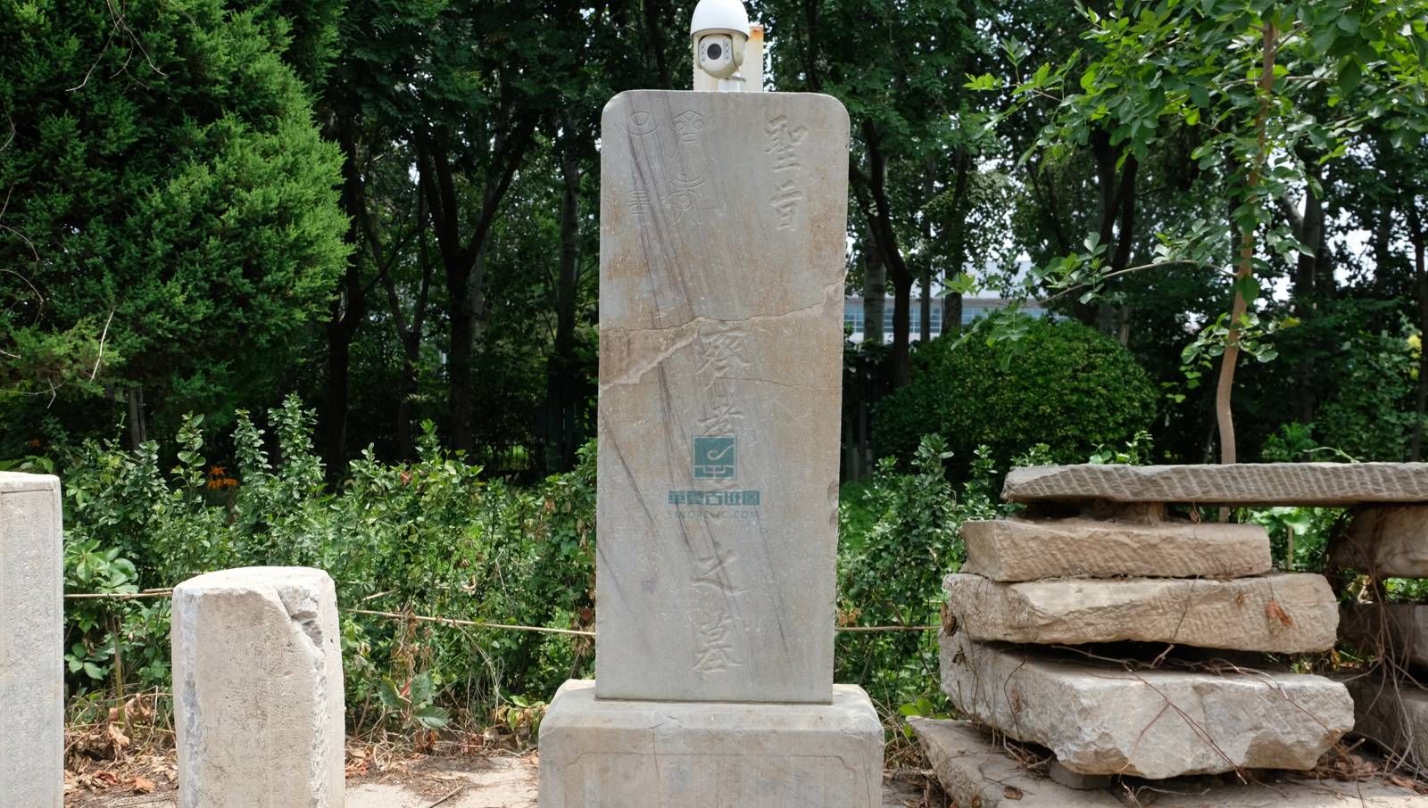 立在坟墓前面或后面的、上面刻载死者姓名、经历事迹等文字的碑。人类对死者埋葬处所做的一种纪念性的载体,一般以石质材料制成,也有使用木材、金属材料和其他材料制成。中国古代“墓而不坟”,只在地下掩埋,地表不树标志。后来逐渐有了地面堆土的坟,又有了墓碑。人去逝后,如要立墓,大多都要有墓碑文。墓碑文上一般刻记死者的姓名、籍贯、成就,逝世日期和立碑人的姓名及与死者的关系。写碑文应对死者充满敬意和感情。民国二十二年《河南通志·睢县采访稿·袁可立墓碑》:“袁尚书可立墓碑,在(睢州)城南四里许,刘店村东里许。碑高八尺,上蛟螭,下赑屃,高约丈余,尚称体制。”
